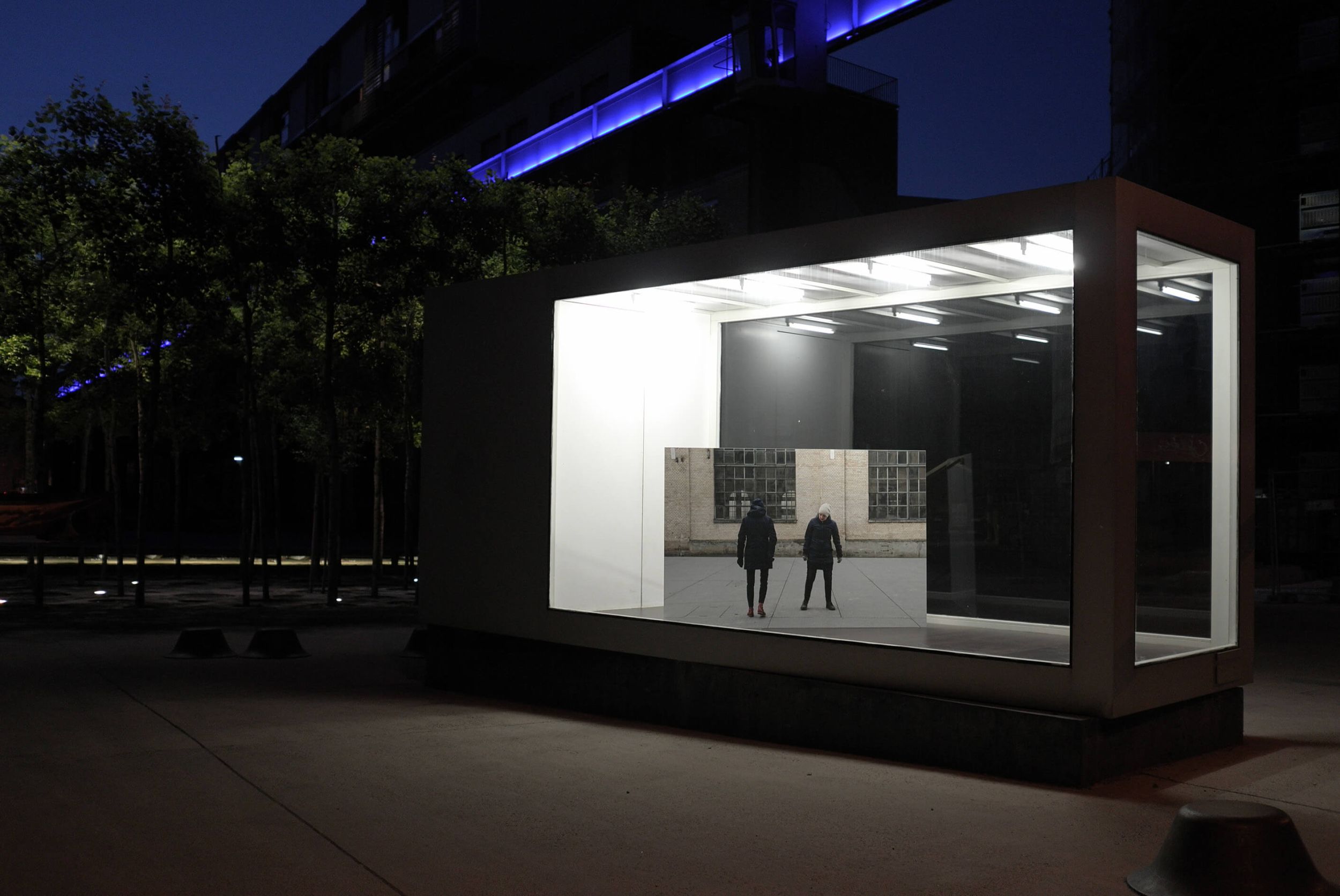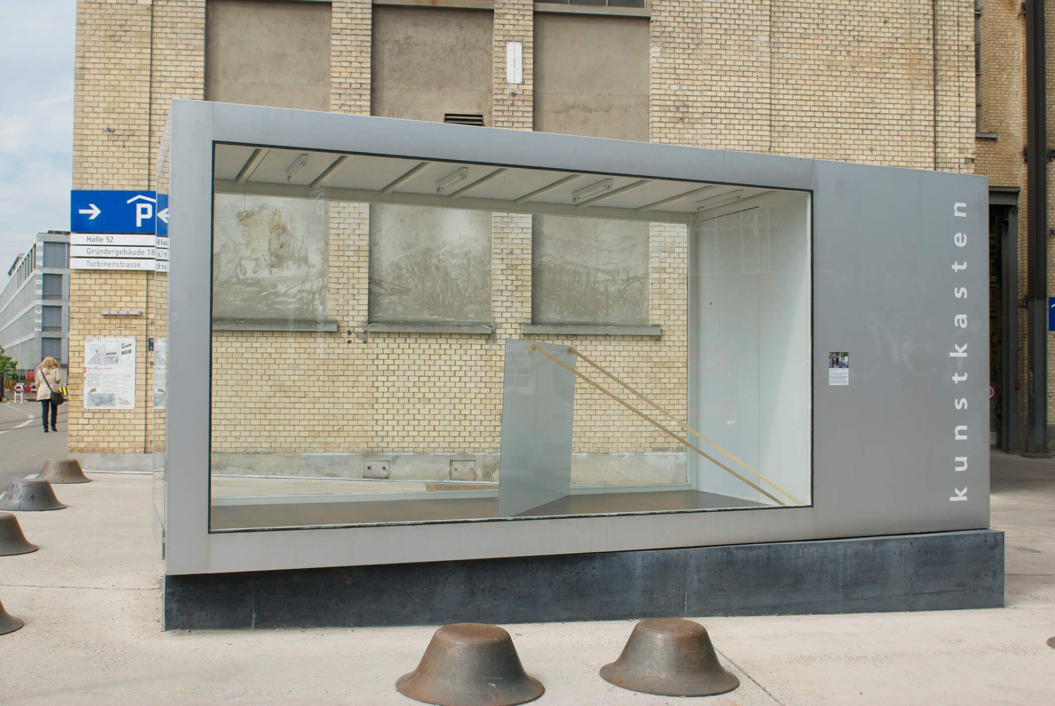 2/„arranged as an action“ ist das Ergebnis einer Annäherung an die unmittelbare Umgebung des kunstkastens. Dieser Ort wird von Architektur gestaltet, gegliedert und vorrangig dominiert. Wir kombinieren die vorgefundenen Strukturen und Situationen mit Aktion, indem wir uns selber in die Umgebung einfügen. Der Ort gibt den Anstoss. Die Aktion kann als Reaktion auf die physischen Gegebenheiten verstanden werden, jedoch nicht im Sinne einer abschliessenden Antwort, sondern viel eher einer Befragung. Wo und wie lassen sich an diesem Ort Spielräume für die eigene Arbeit finden? Kunstkasten Winterthur, in Zusammenarbeit mit Tonjaschja Adler.