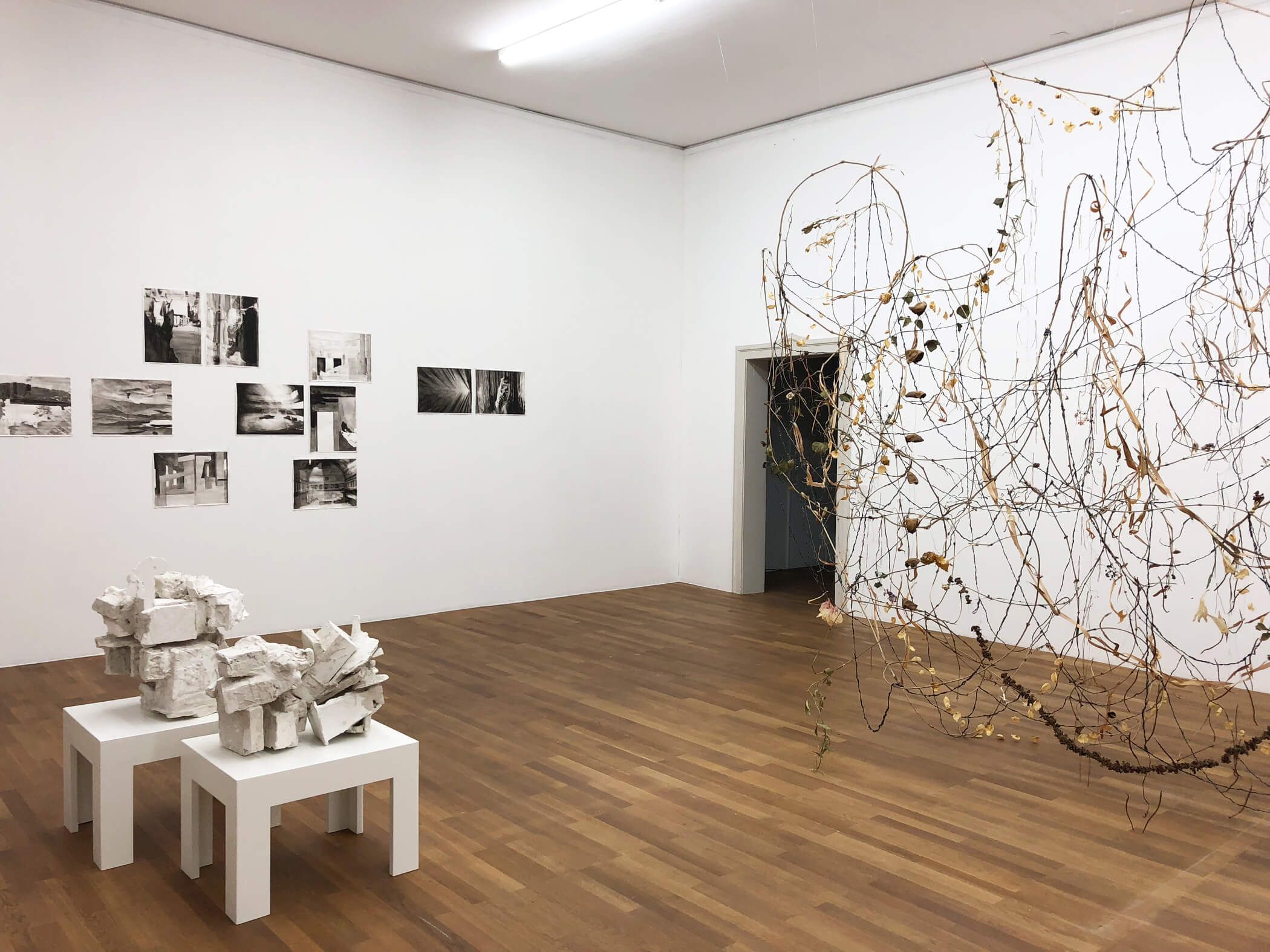 Der Prozess des Bauens und der stetige Wandel im urbanen Raum bringt Vergänglichkeit mit sich. Dabei werden temporäre Räume sichtbar. Instabilität und Gleichgewicht sind Themen, denen ich nachgehe. Das Fragile und gleichzeitig Brachiale wird ausgelotet. Der Prozess und das Interesse am Unfertigen stehen im Vordergrund. Kunsthalle Winterthur.