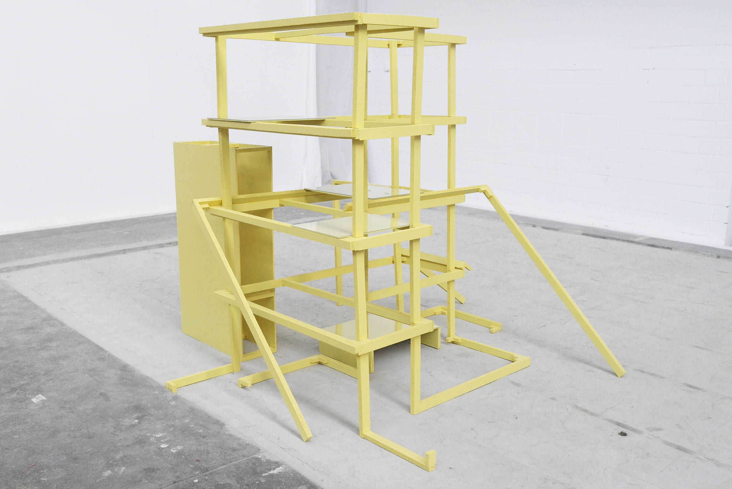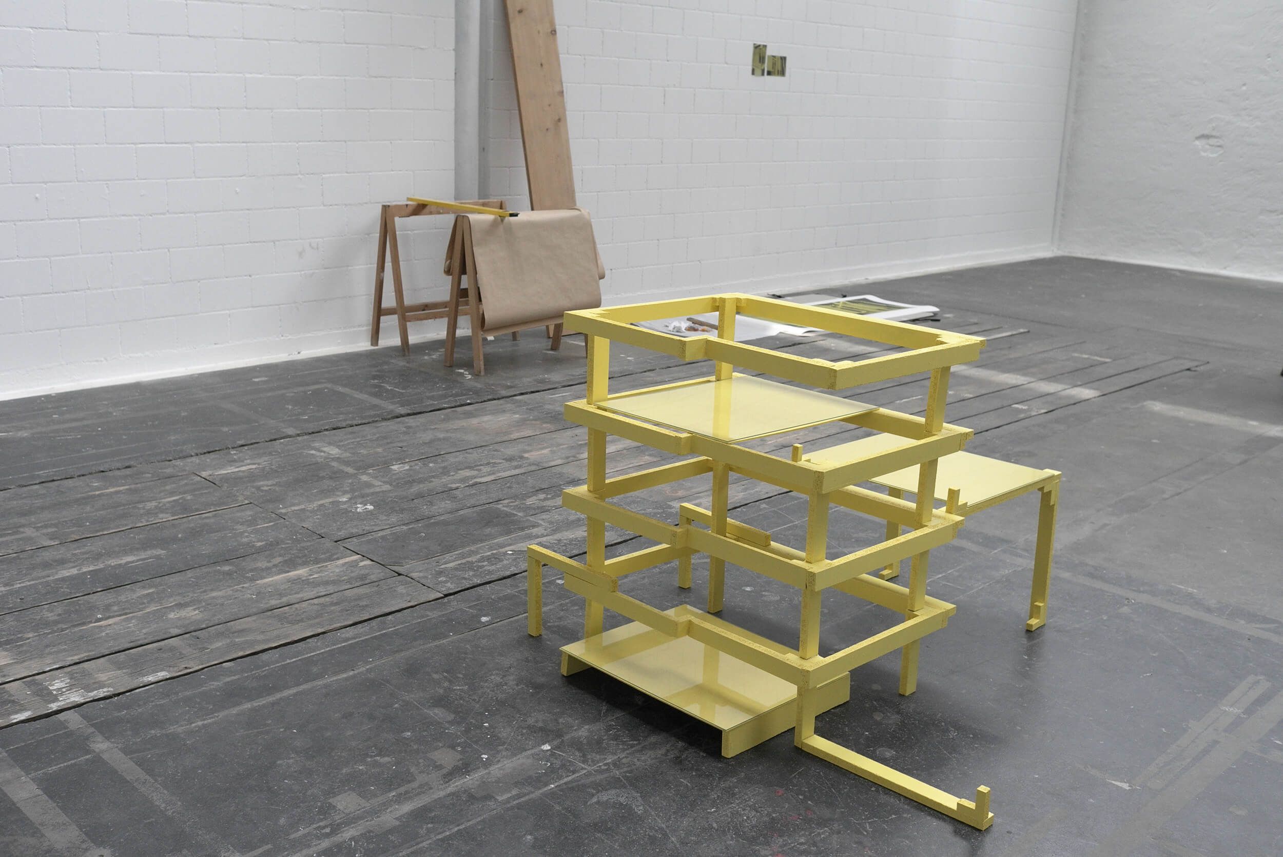 Oft ensteht ein kreativer Prozess durch ordnen, lagern, aufbewahren, hinzufügen und bringt dadurch ein skulpturales Handeln hervor, das ein eigenes Ordnungssystem aufzeigt. Dieser Prozess wird der einst industriellen Produktion in den Räumen der Shedhalle gegenübergestellt. Lagerung, Aufbewahrung und Anordnung von Material sind Ausgangspunkte. Atelierstipendium, Tanz mit Bruce #7, Shedhalle Frauenfeld