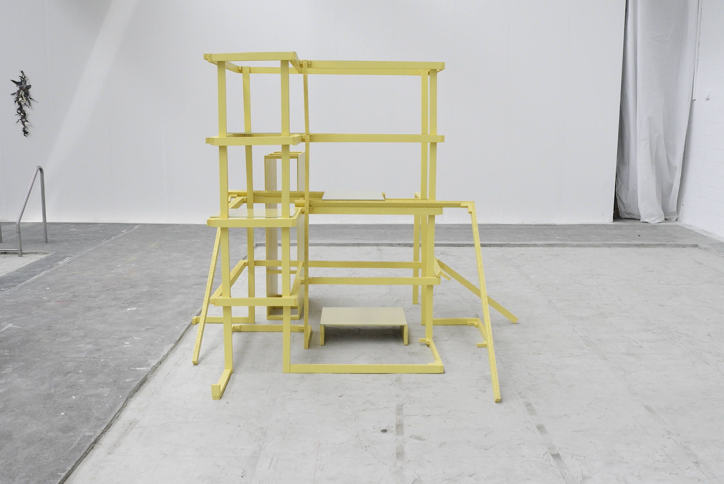 Oft ensteht ein kreativer Prozess durch ordnen, lagern, aufbewahren, hinzufügen und bringt dadurch ein skulpturales Handeln hervor, das ein eigenes Ordnungssystem aufzeigt. Dieser Prozess wird der einst industriellen Produktion in den Räumen der Shedhalle gegenübergestellt. Lagerung, Aufbewahrung und Anordnung von Material sind Ausgangspunkte. Atelierstipendium, Tanz mit Bruce #7, Shedhalle Frauenfeld