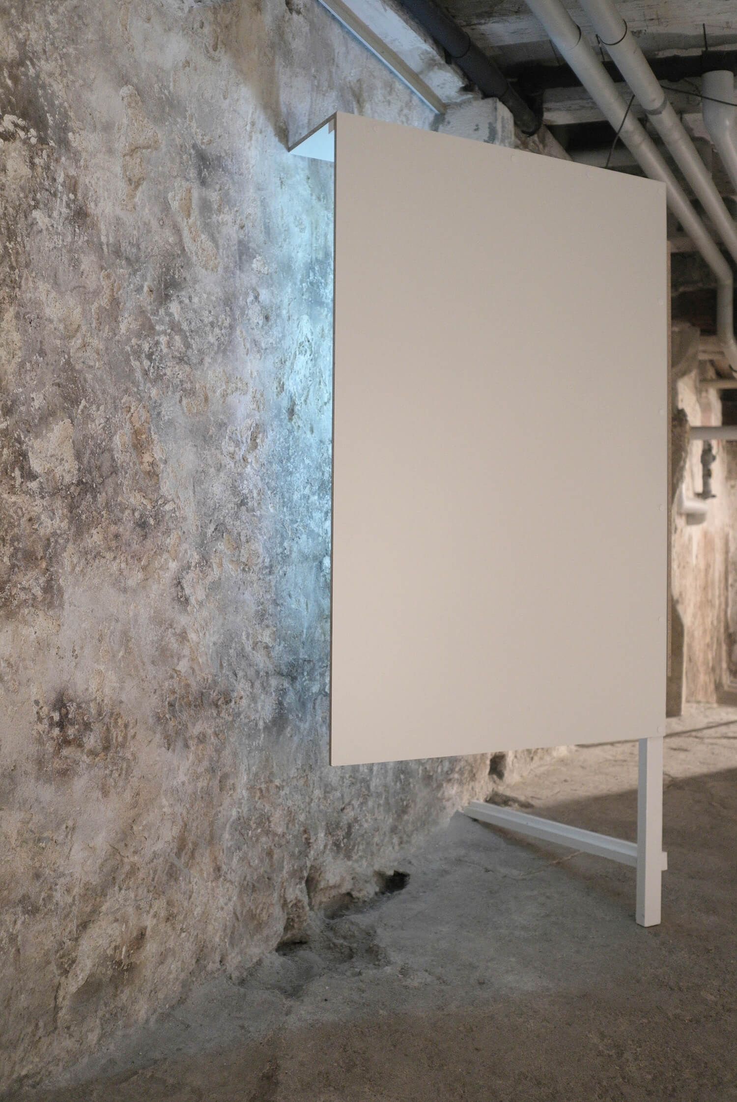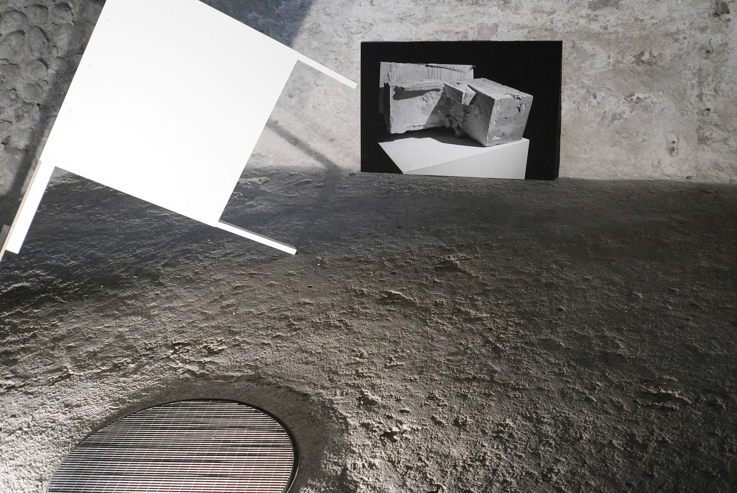 placing-5 sind Abstraktionen von baulichen, architektonischen Strukturen aus meiner räumlichen Umgebung, genauer, meinem Atelierinnenraum, der sich damals in einem Container Mitten in Zürich befand. Diese Umsetzungen ergeben modulare Fragmente, die in den Ausstellungsraum des Kunstbauhofs mit seiner mittelalterlichen Bausubstanz transformiert werden. Im Zentrum stehen eine Verortung, die damit verbundenen Bezugspunkte und deren räumliche Darstellung. Zudem war an der Ausstellung "sklep 61" die Arbeit Brocken5 /Prints zu sehen.
