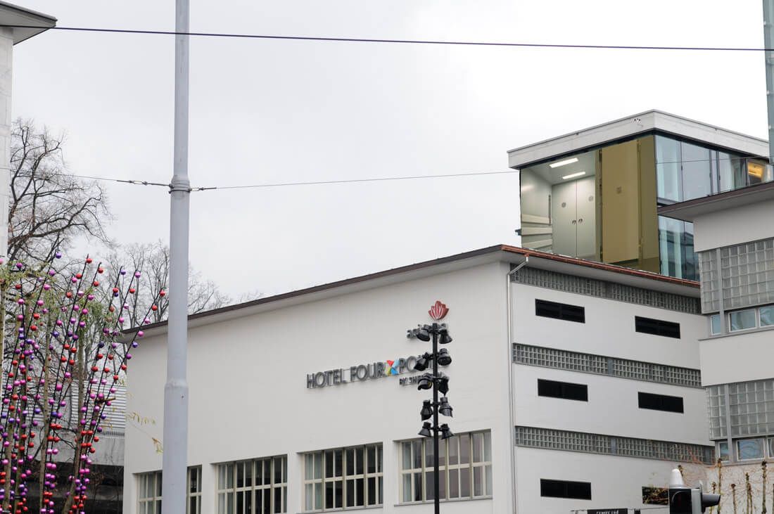 Am Einkaufszentrum Sihlcity sind an verschiedenen Standpunkten vier Pannels angebracht. Sie sind oben am Gebäude angebracht und je nach dem, wo man sich befindet, wahrnehmbar. Wir schaffen neue, illusorische Räume, benutzen die Pannels dreidimensional, bauen also weiter an Sihlcity oder dekonstruieren die Architektur des Einkaufszentrums. Wir importieren Bilder von bestehenden Räumen aus einem Bürogebäude, das zum Teil leer steht und zum Teil umgenutzt wird, und benutzen diese für unsere Raumillusionen. Details verschiedener Baustile treffen aufeinander.
